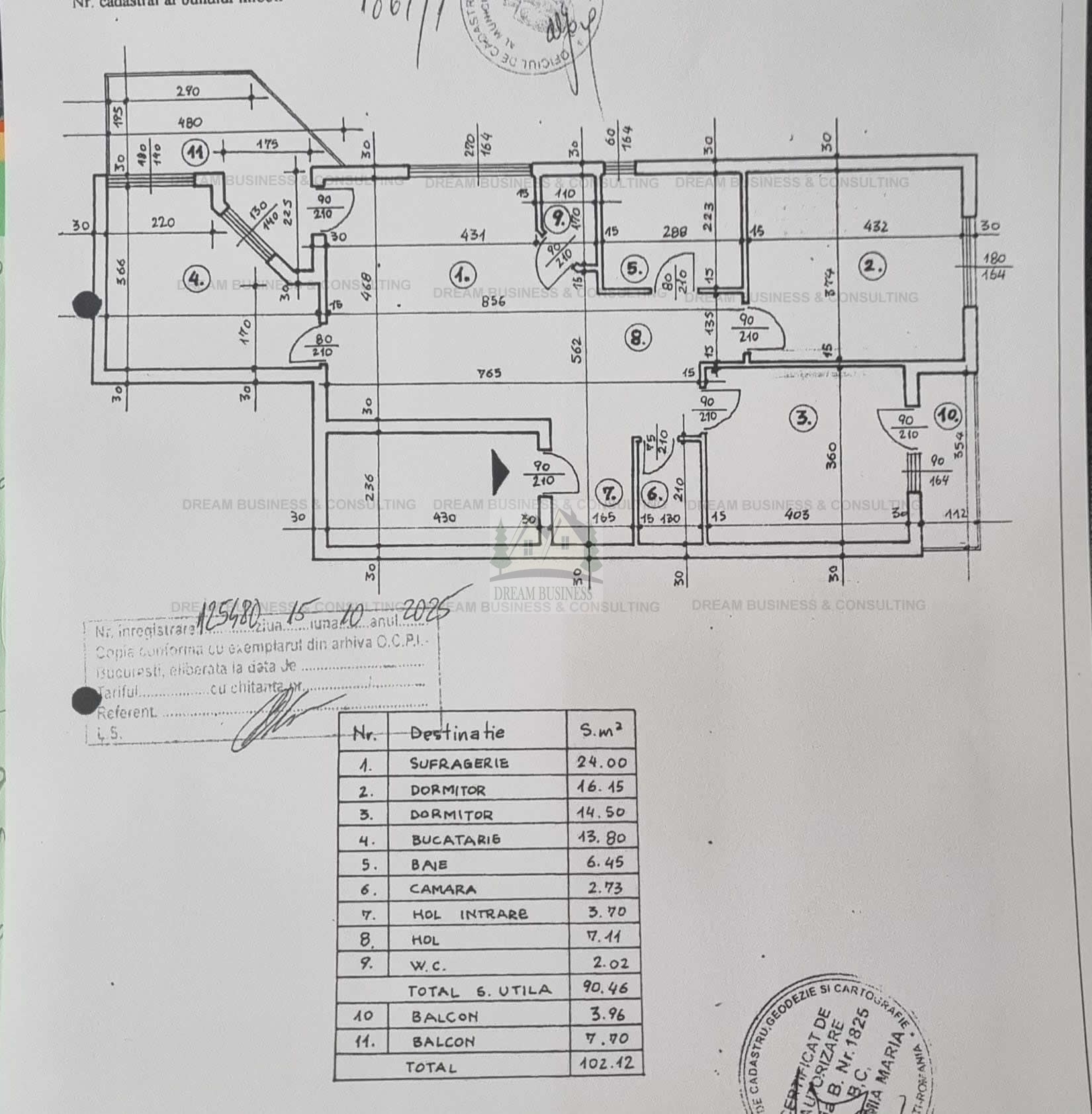 Suprafa apartamentului este de 102,12 mp, (90,4 mp utili + 11,70 mp balcoane)