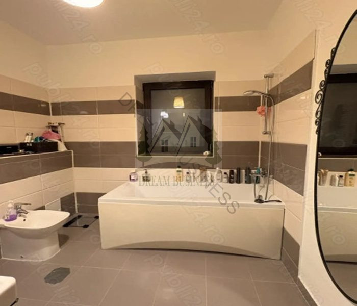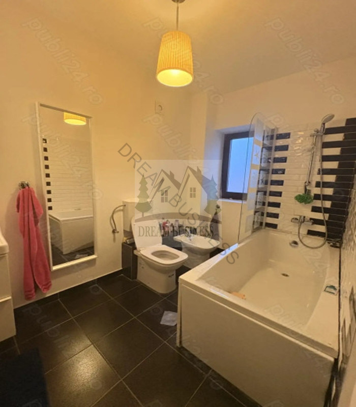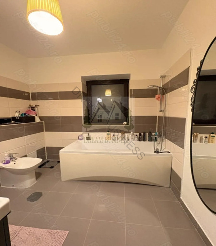 Etaj: 3 dormitoare, 2 dressinguri pe hol, 1 baie pe hol, 1 baie in dormitorul matrimonial, dressing in dormitorul matrimonial.